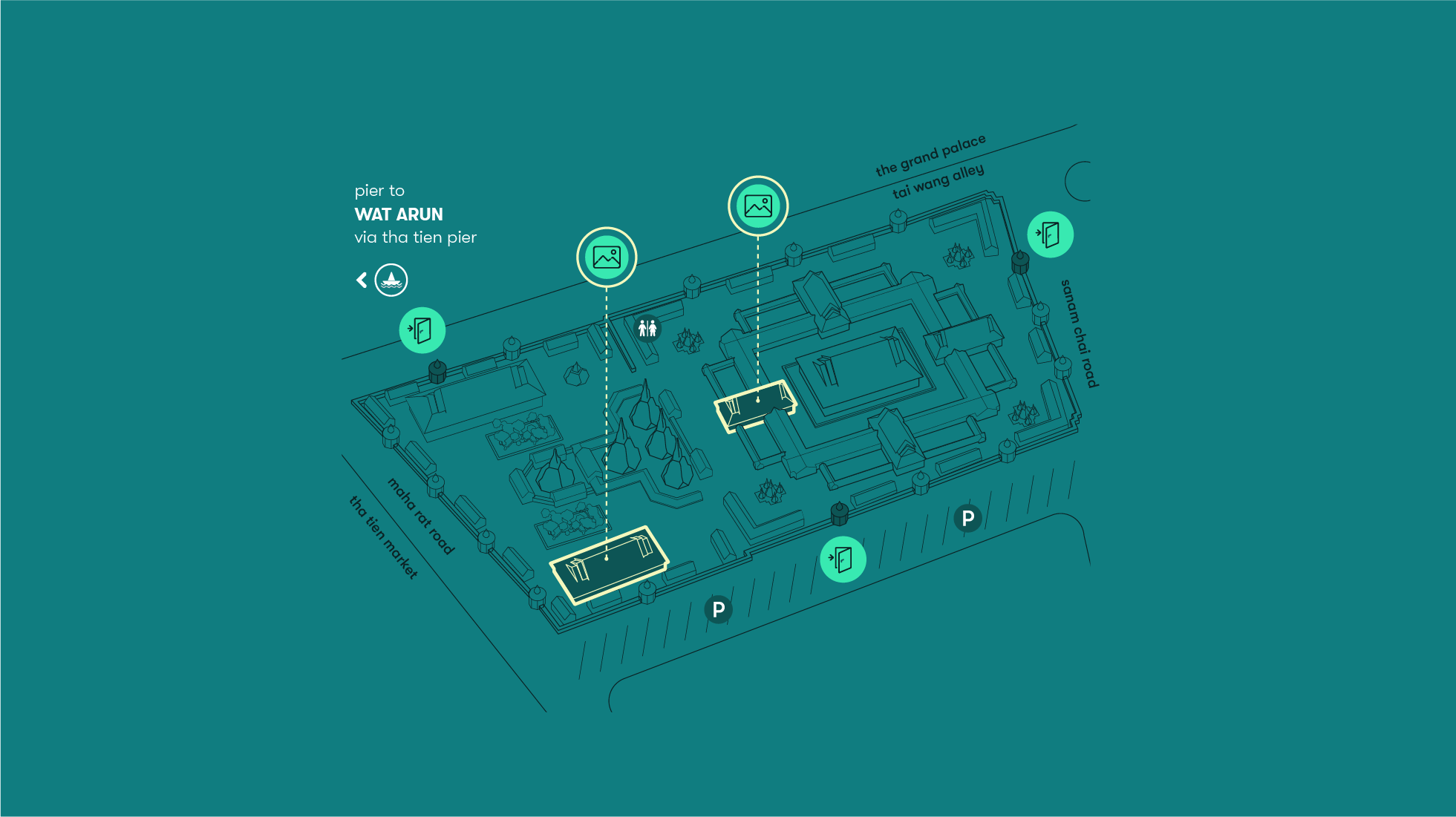 | By Pier: | Chao Phraya Express Boat (เรือด่วนเจ้าพระยา) Tha Chang Pier (ท่าช้าง) or Tha Tien Pier (ท่าเตียน) |